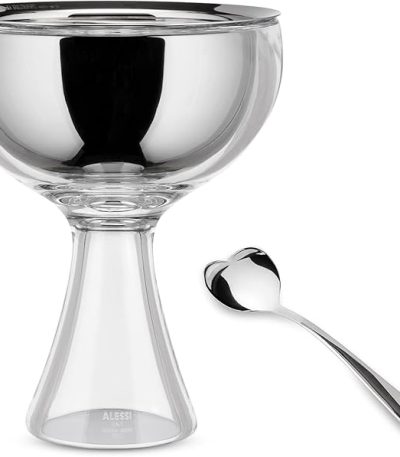 Big Love AMMI01S I – Set Composé de Une Coupe à Glace en Acier Inoxydable 18/10 et Résine Thermoplastique et Une Cuillère à Glace en Acier Inoxydable 18/10 Brillant, Glace ALESSI