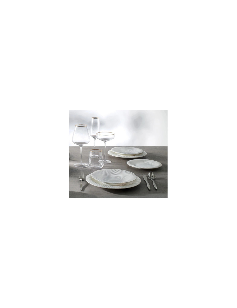 Service de Table 18 Pcs « OPTICAL » en Porcelaine Bone China, BRANDANI